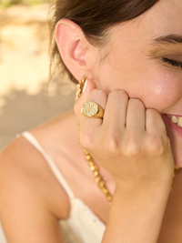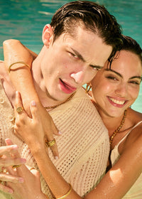 Una declaración al estilo que forma parte de la nueva colección The Date de Arena Roja. Este sello presenta el nombre de la marca de una forma única, dandole mucho carácter a un diseño que representa en su totalidad la elegancia gruesa y atemporal que tanto la representa la marca.